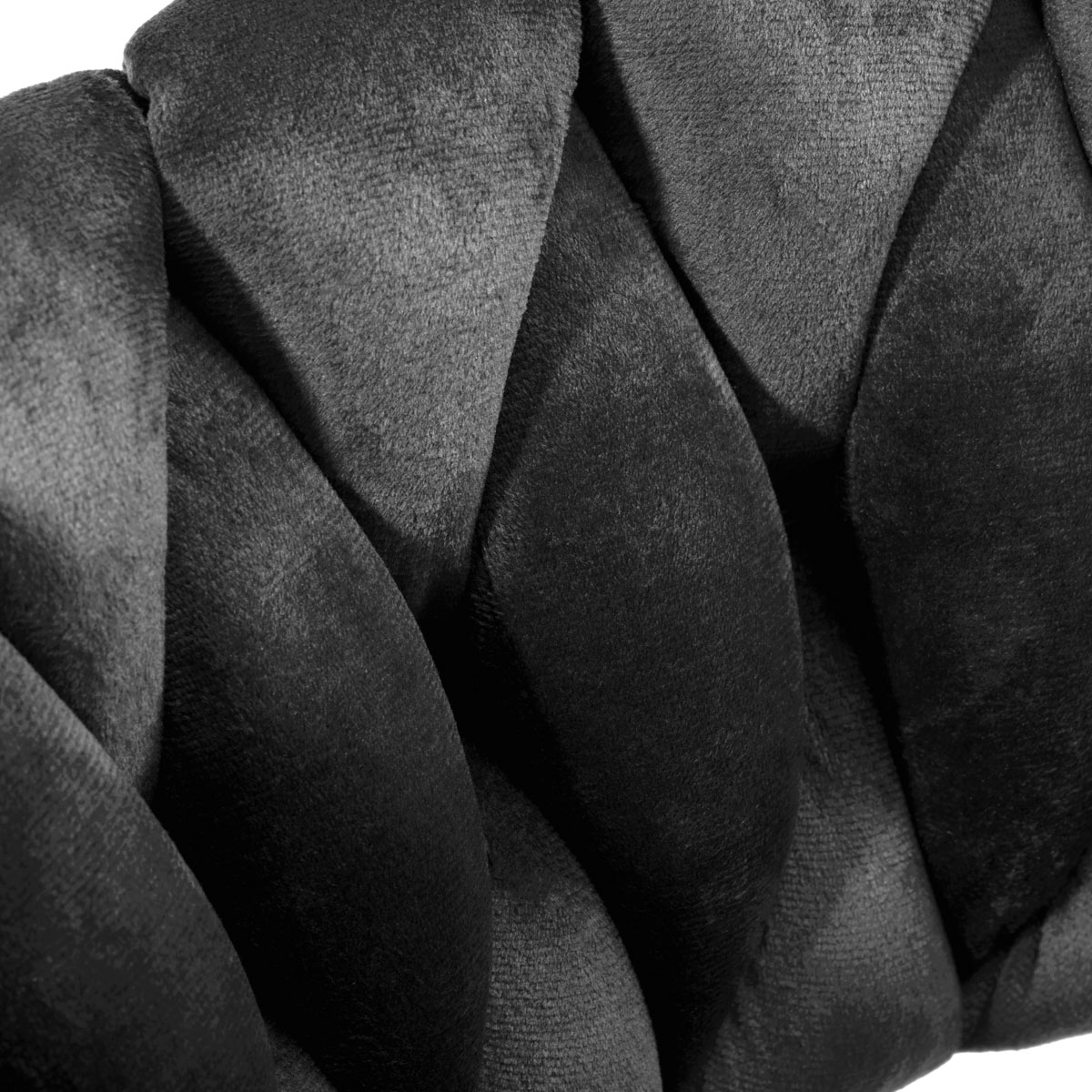 Pleasant-to-the-touch, velvet upholstery in shades of gray gives the hocker a unique character, and the aesthetically intertwined fabric on the backrest emphasizes the unique look of the furniture. The finish makes the piece of furniture catch the eye. The frame in shades of gold adds elegance and prestige, perfectly matching the velvet.