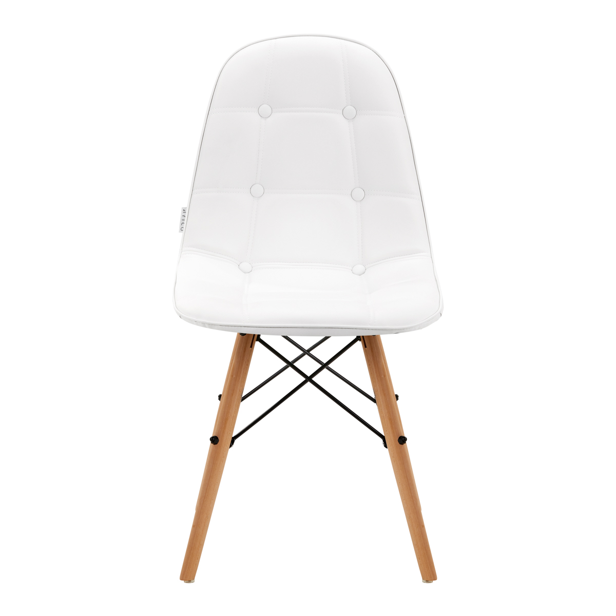 The seat is filled with foam and covered with upholstery made of pleasant-to-the-touch synthetic leather in shades of white, which is very easy to keep clean. Small stains and dirt can be easily removed with a slightly dampened cloth. Aesthetic quilting and careful stitching provide an elegant touch, while the metal frame in shades of black adds stability to the furniture. Matte-finished legs are finished with plastic protections, additionally protecting against accidental damage. The chair in the Scandinavian style is a comfortable piece of furniture that will become a decoration of the reception area of any beauty salon.