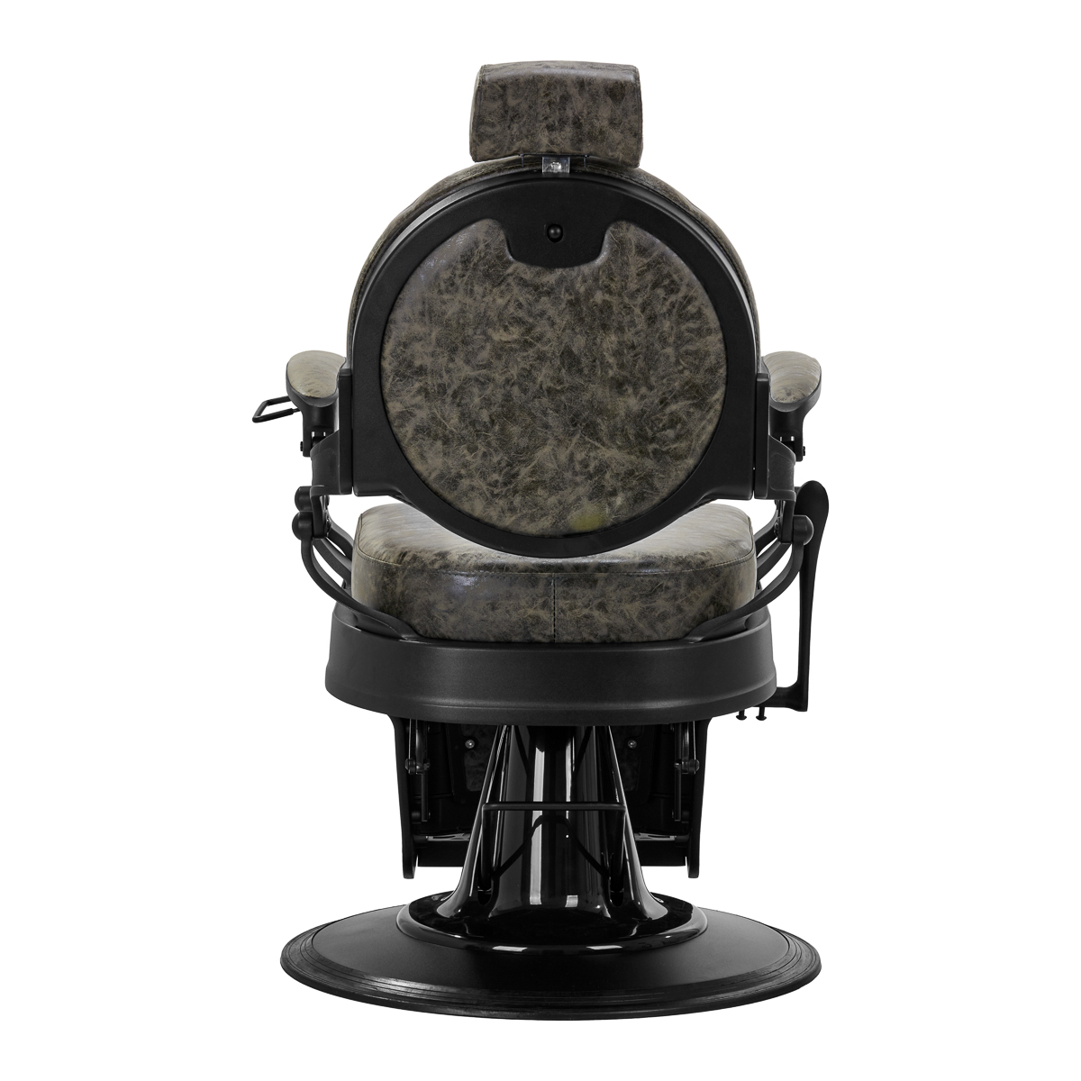 The solid construction of the base ensures stability and high comfort of use. The seat filling is made of durable, deformation-resistant foam and the upholstery is made of pleasant-to-touch synthetic leather with a worn, partially matte finish with an aged effect, ensuring the durability of the furniture and its comfortable use for a long time. They also make the equipment resistant to moisture, durable and easy to clean. The covering in shades of green with quilting and decorative buttons gives it a unique character. The chair with a characteristic design, referring to the vintage style, perfectly fits the atmosphere of barbershops, emphasizing their unique atmosphere.