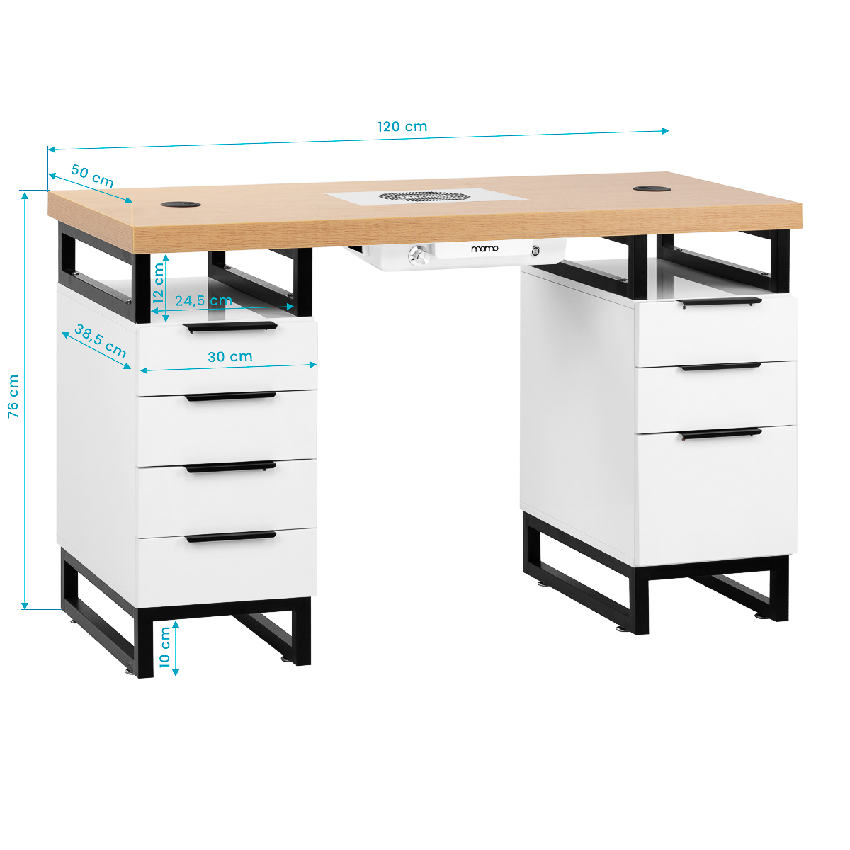 The Momo L02 cosmetic desk with integrated dust absorber is a modern solution combining industrial style with maximum functionality. Stable construction, carefully selected materials and attention to detail make this model not only look great, but above all meet the needs of professionals. Ideal for everyday salon work – it provides convenience, ergonomics and comfort for both stylist and clients.