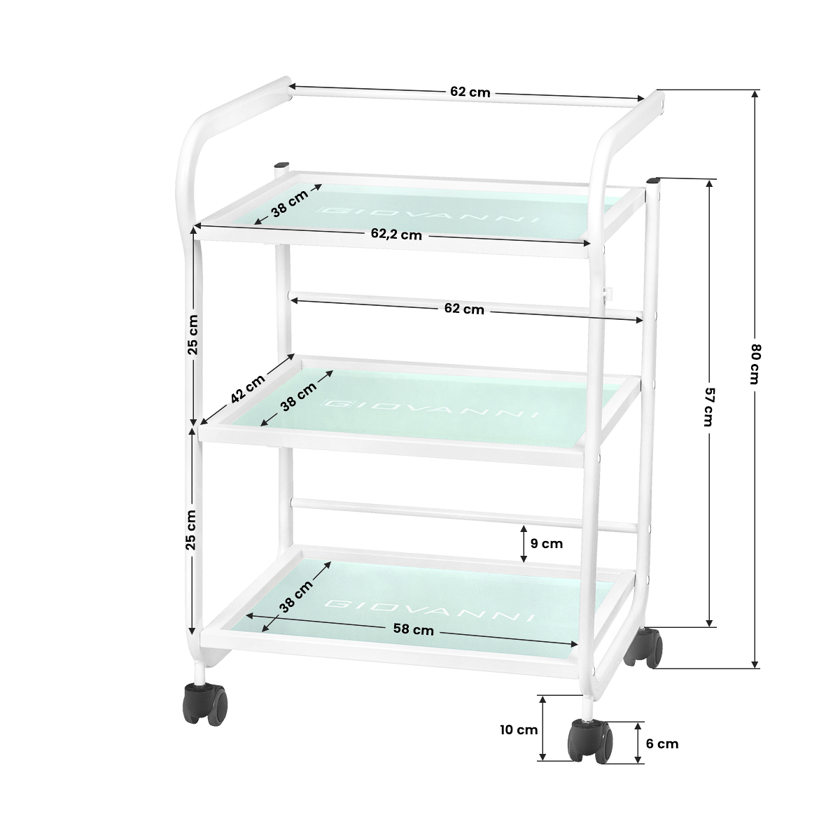 glass shelves with the giovanni logo engraved