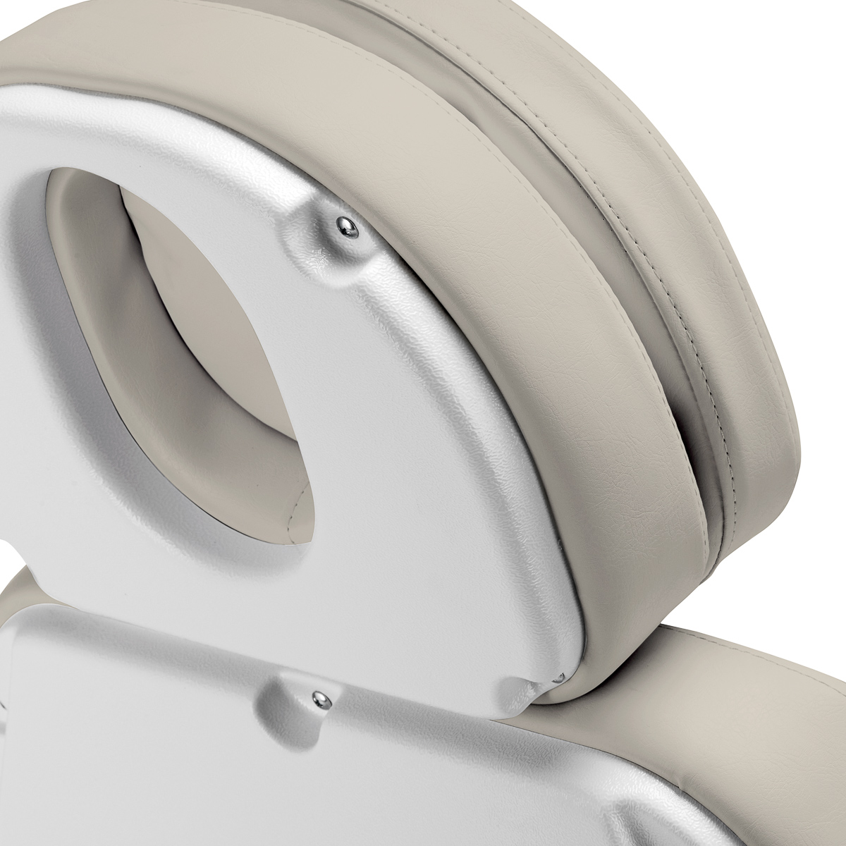 The extendable headrest helps customize the equipment for users of different heights, providing stable head support during treatments. It is also possible to adjust the extension of the footrest, which is especially useful during treatments performed on taller people, providing them with better support. The armrests are movable within 180º, which facilitates taking a seat in the chair and provides comfortable access for the person performing the procedure. They can be easily and quickly removed if necessary.