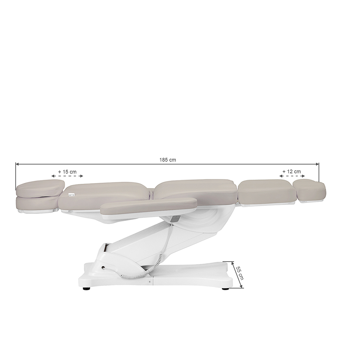 The Sillon Classic electric cosmetic chair is distinguished by its simple appearance, intuitive operation and versatility. It is equipped with 3 actuators controlled by a wired remote control. It is distinguished by an ergonomically profiled seat and the ability to adapt to individual needs, making it perfect for many specialist offices.
