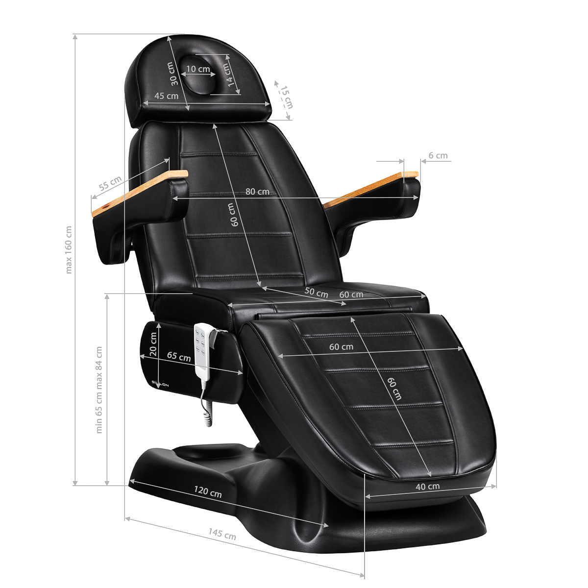 Our showroom is located in Dinxperlo, directly on the border between the Netherlands and Germany. With our many years of experience in the industry, we can hold up a mirror to you and provide you with the right advice. We speak the same language! We advise, inspire, motivate you and help you with the purchase of Electric cosmetic chair SILLON Lux 273B 3 actuators black. Our suppliers are located throughout Europe, from Germany, England, Italy to Poland.