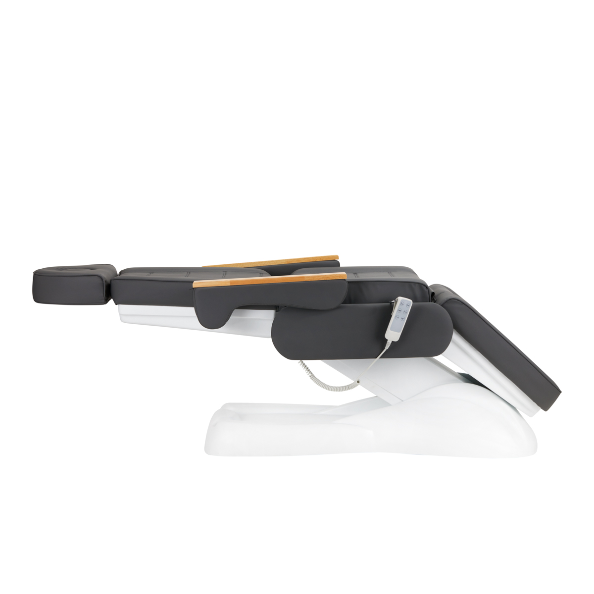 Using an intuitive remote control, the chair can be smoothly adjusted in three planes – it has adjustable height and angles of the backrest and footrest. This allows you to freely set the position according to the procedure being performed at the moment, which affects both the comfort of the user and the practitioner.