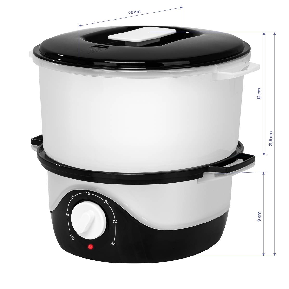 The housing of the towel warmer is made of high-quality plastic in shades of white and black, which not only makes it easy to keep clean but also makes it fit perfectly into any interior. With the user’s convenience in mind, the towel warmer is easy to clean and maintain – the detachable elements can be quickly wiped or washed, allowing you to keep it hygienic and ready for use at any time. The compact design makes it easy to carry and store, even in limited space. Non-slip feet guarantee the stability of the device.