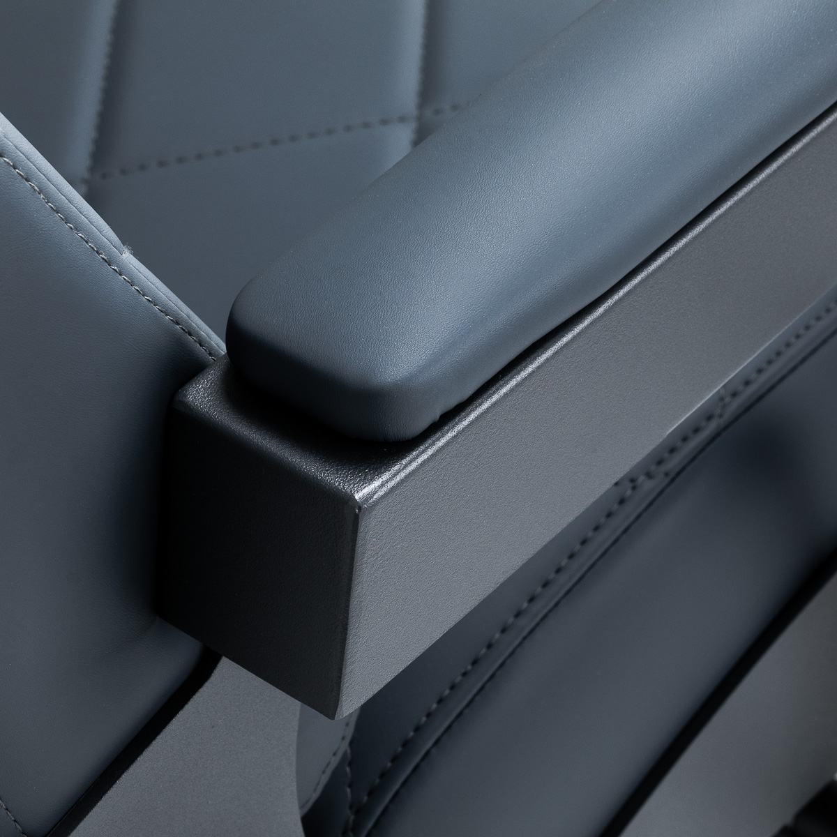 The stable construction ensures safety and long-lasting durability. The seat, filled with deformation-resistant foam, and upholstery made of soft, synthetic leather ensure durability and comfort. The moisture-resistant materials are not only durable but also easy to clean. The graphite upholstery combined with a graphite frame gives the chair a modern and professional look, while its minimalist style allows it to fit into the décor of any barbershop.