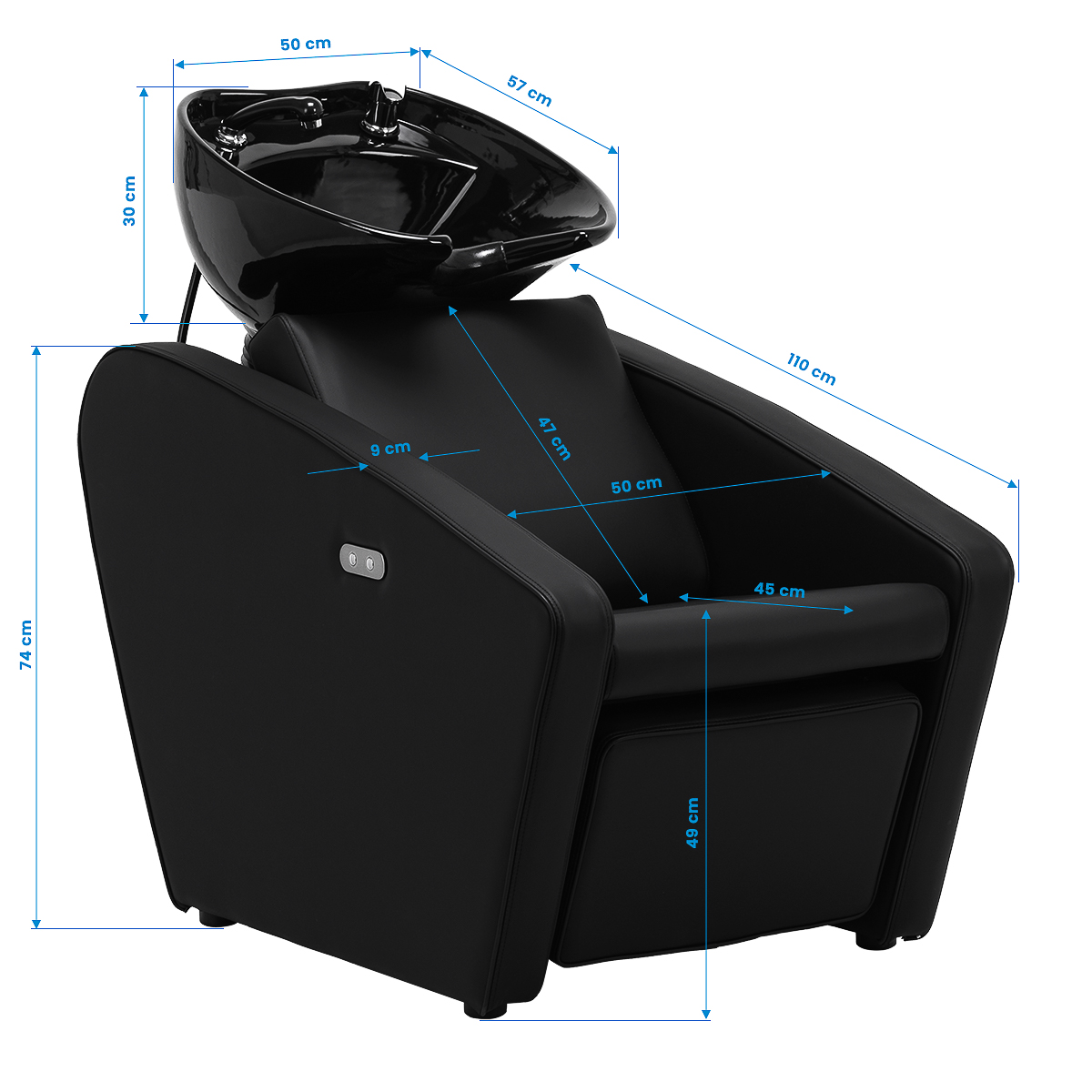 The footrest adjustable with an electric actuator allows for an ergonomic position adjusted to the client’s needs. This reduces muscle tension, which ensures comfort even during longer treatments. The angle of inclination is controlled using buttons located on the side of the chair, raising or lowering the footrest. This solution not only provides exceptional comfort but also high functionality, making the wash unit perfectly meet the expectations of even the most demanding users.