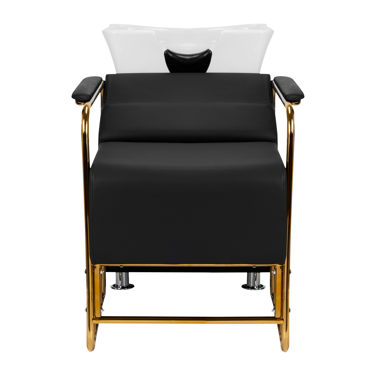 The modern Gabbiano hairdressing car wash combines functionality with Italian elegance. The car wash is made of the highest quality materials and perfectly finished. We know how important the client’s comfort is during treatments, which is why the special design provides the client with a solid head support while washing. The soft and extremely comfortable seat is covered with high-quality gray eco-leather. The car wash has a white ceramic bowl and golden armrests. The perfect piece of furniture for modern interiors.