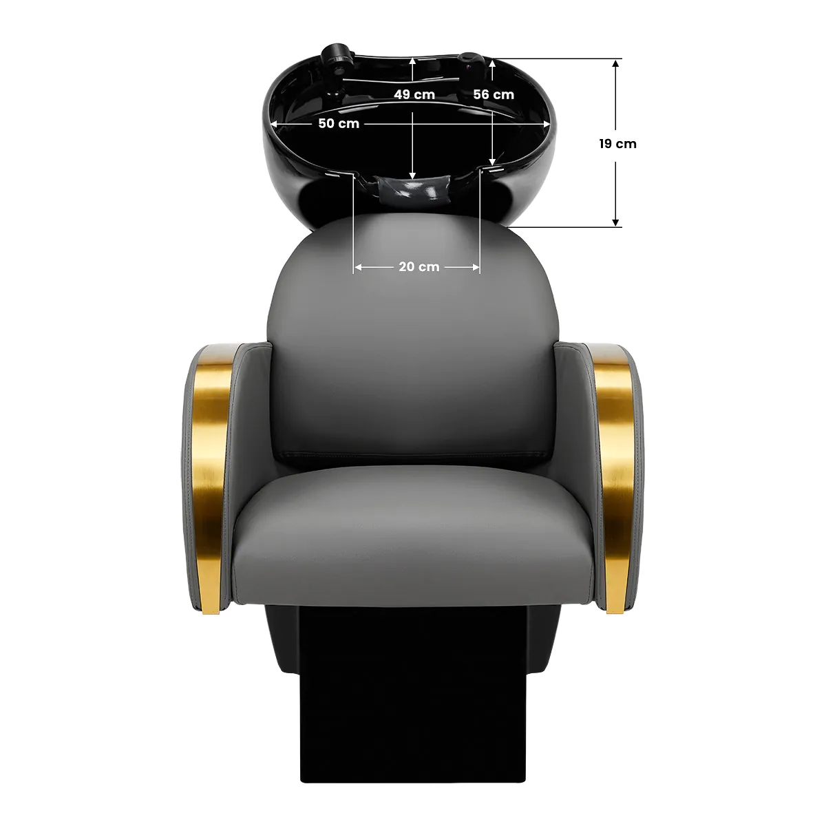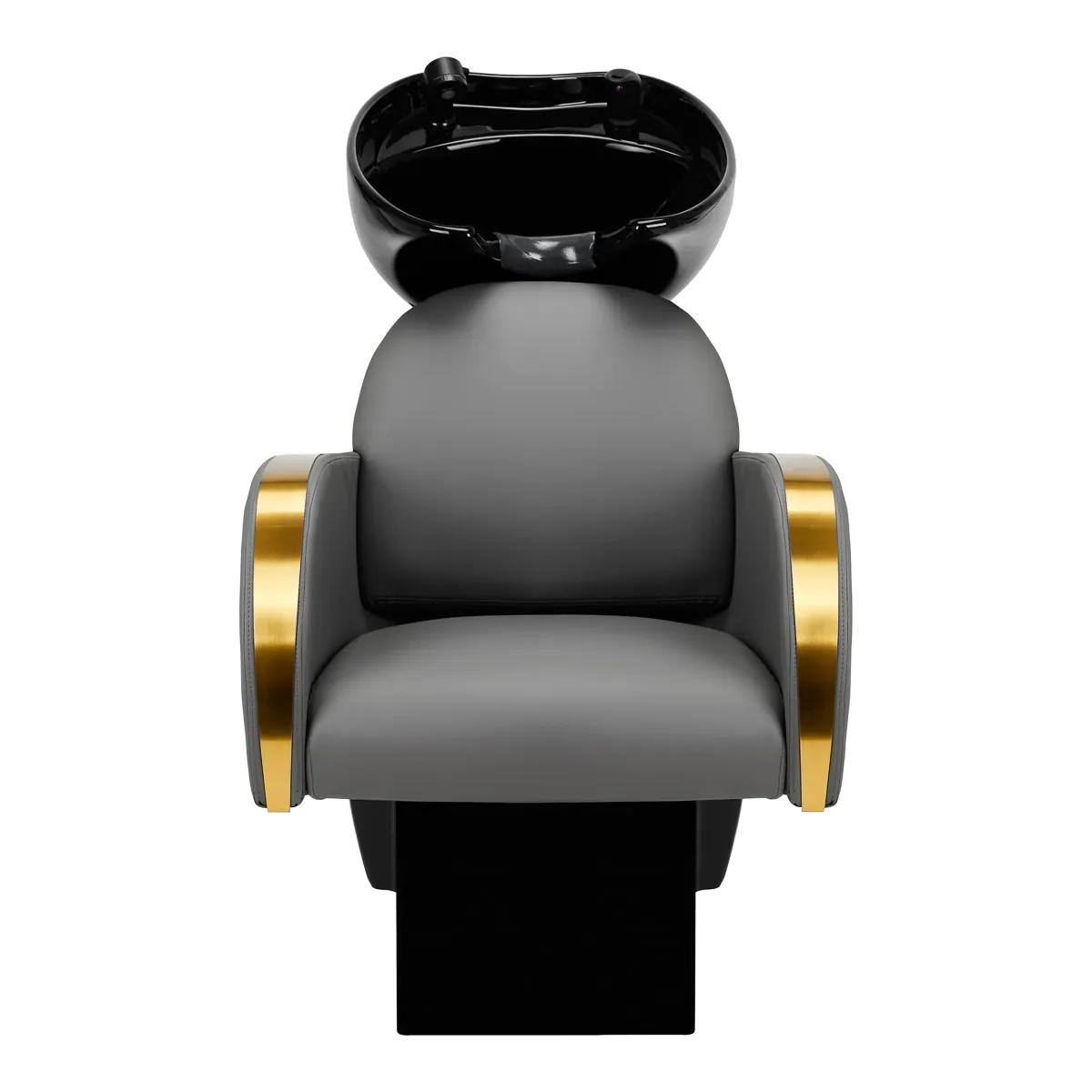 A properly profiled chair filled with durable foam ensures high comfort of use and elegant armrests allow for the correct positioning of the client’s shoulders. The backrest is placed at an optimal angle to allow you to take the right position and promote excellent spine support. Coverage in shades of grey and decorative metal surfaces lacquered in gold colors give it a timeless elegance and in addition guarantees long-term durability and ease of cleaning. Distinctive hair wash unit classic finish makes it look great in almost any space. The set includes complete fittings in shades of black, including a faucet, shower head and dedicated hoses to provide a complete set of tools for work.