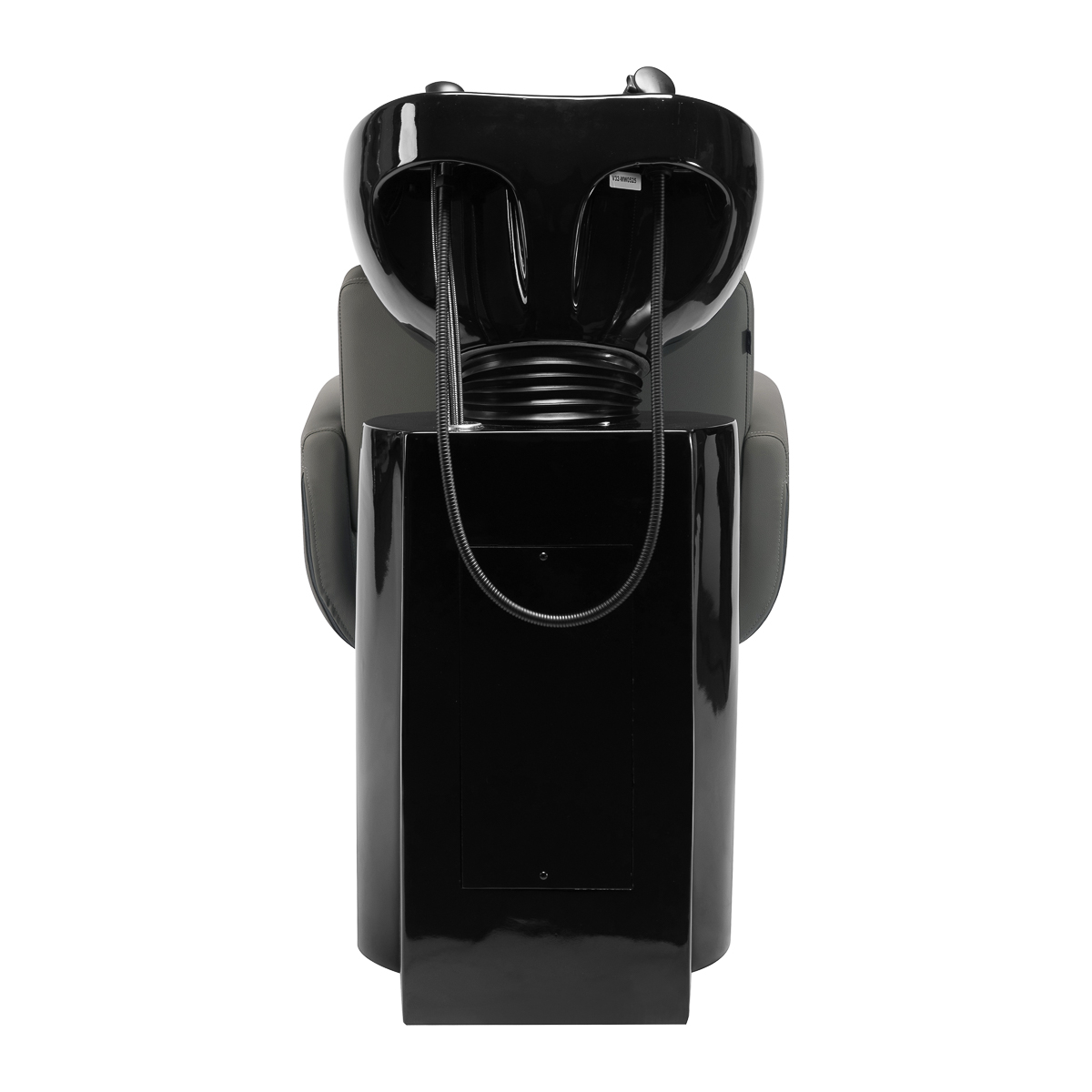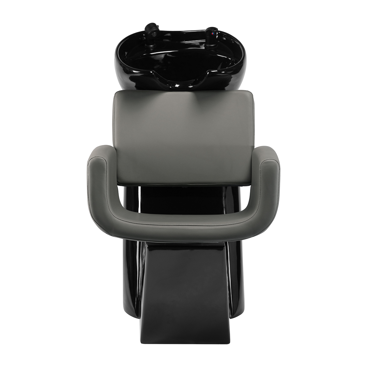 The deep, ceramic bowl in shades of black reduces splashing of water and cosmetics used during treatments. The adjustable tilt angle allows for customization to individual needs. The durable material is resistant to stains, scratches, and chemicals, and the smooth surface makes it easy to clean. The ergonomically contoured collar provides comfortable head support.