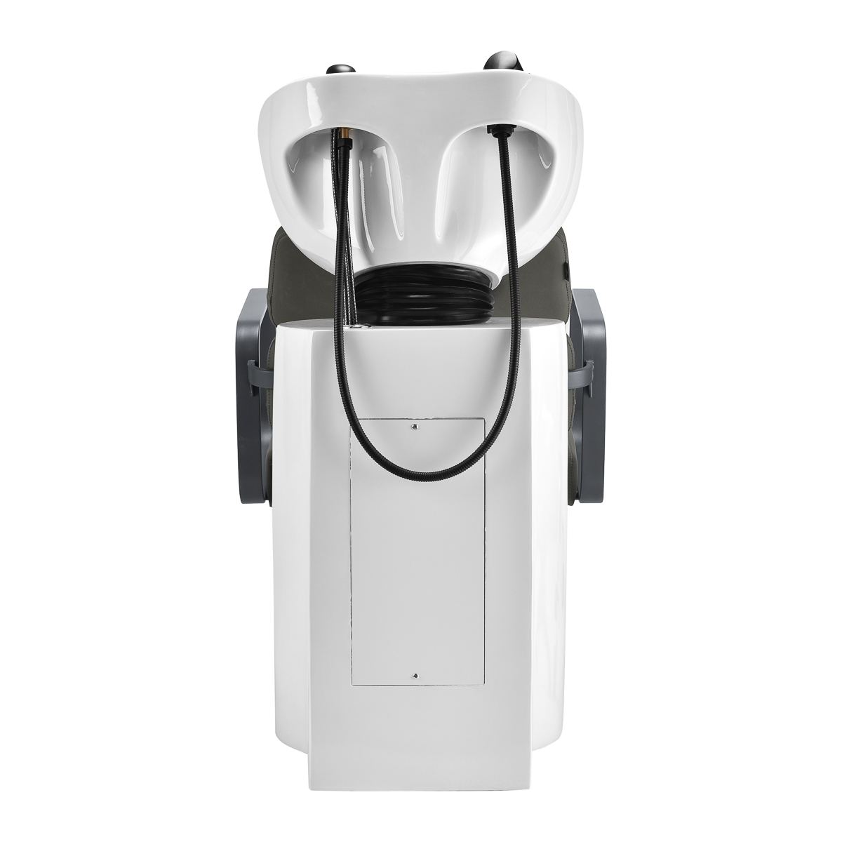 The practical hair wash unit is equipped with a mixer faucet, which provides easy access to hot and cold water. This makes it easier to adjust the temperature to the customer’s individual preferences. A dedicated place to hang up the handset makes work easier, and the chrome-plated plug with a special strainer allows you to control the water flow and maintain high hygiene standards in the salon. The water connection has been placed inside the base, allowing the pipes to be easily hidden. A significant advantage of this model is the opening left between the backrest and the seat, which makes it easier to keep the living room clean by allowing you to easily sweep dirt from every nook and cranny of the chair. The hair wash unit has been designed in such a way as to ensure comfort during various treatments, ensuring proper back support. The combination of functionality and amenities makes working in a hairdressing salon even more comfortable.