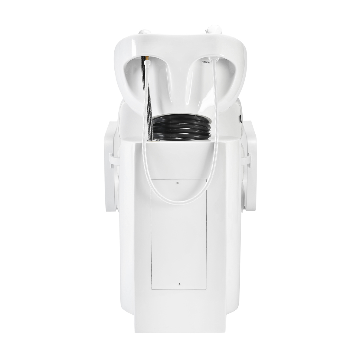 The practical hair wash unit is equipped with a mixer faucet, which provides easy access to hot and cold water. This makes it easier to adjust the temperature to the customer’s individual preferences. A dedicated place to hang up the handset makes work easier, and the chrome-plated plug with a special strainer allows you to control the water flow and maintain high hygiene standards in the salon. The water connection has been placed inside the base, allowing the pipes to be easily hidden. A significant advantage of this model is the opening left between the backrest and the seat, which makes it easier to keep the living room clean by allowing you to easily sweep dirt from every nook and cranny of the chair. The hair wash unit has been designed in such a way as to ensure comfort during various treatments, ensuring proper back support. The combination of functionality and amenities makes working in a hairdressing salon even more comfortable.