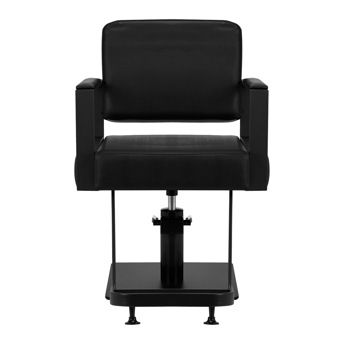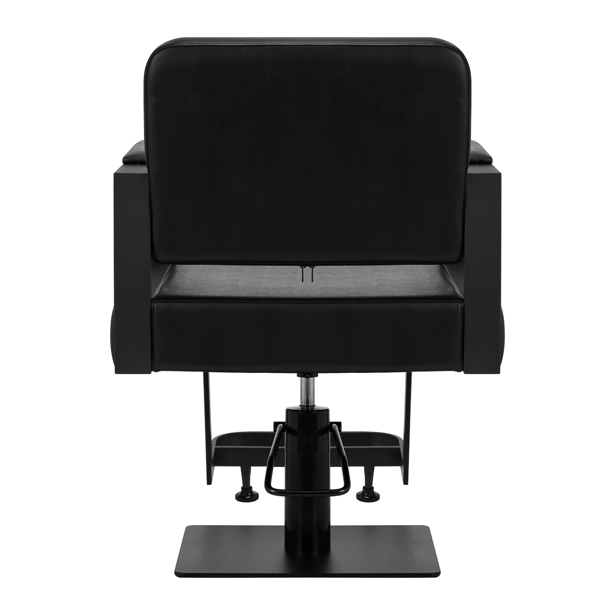 Equipping the chair with a full rotation mechanism makes the hairdresser’s work more effective and comfortable. The solid, flat, square-shaped base guarantees stability during use. The matte-finished, smooth surface gives the element an elegant look and makes it easy to keep clean. A comfortable seat with foam filling ensures high comfort of use, even during many hours of treatments. Geometric, partially upholstered armrests allow for the correct positioning of the client’s shoulders – this means that he does not bury his head in his shoulders or slouch – clearly making it easier to perform precise treatments, including haircuts.