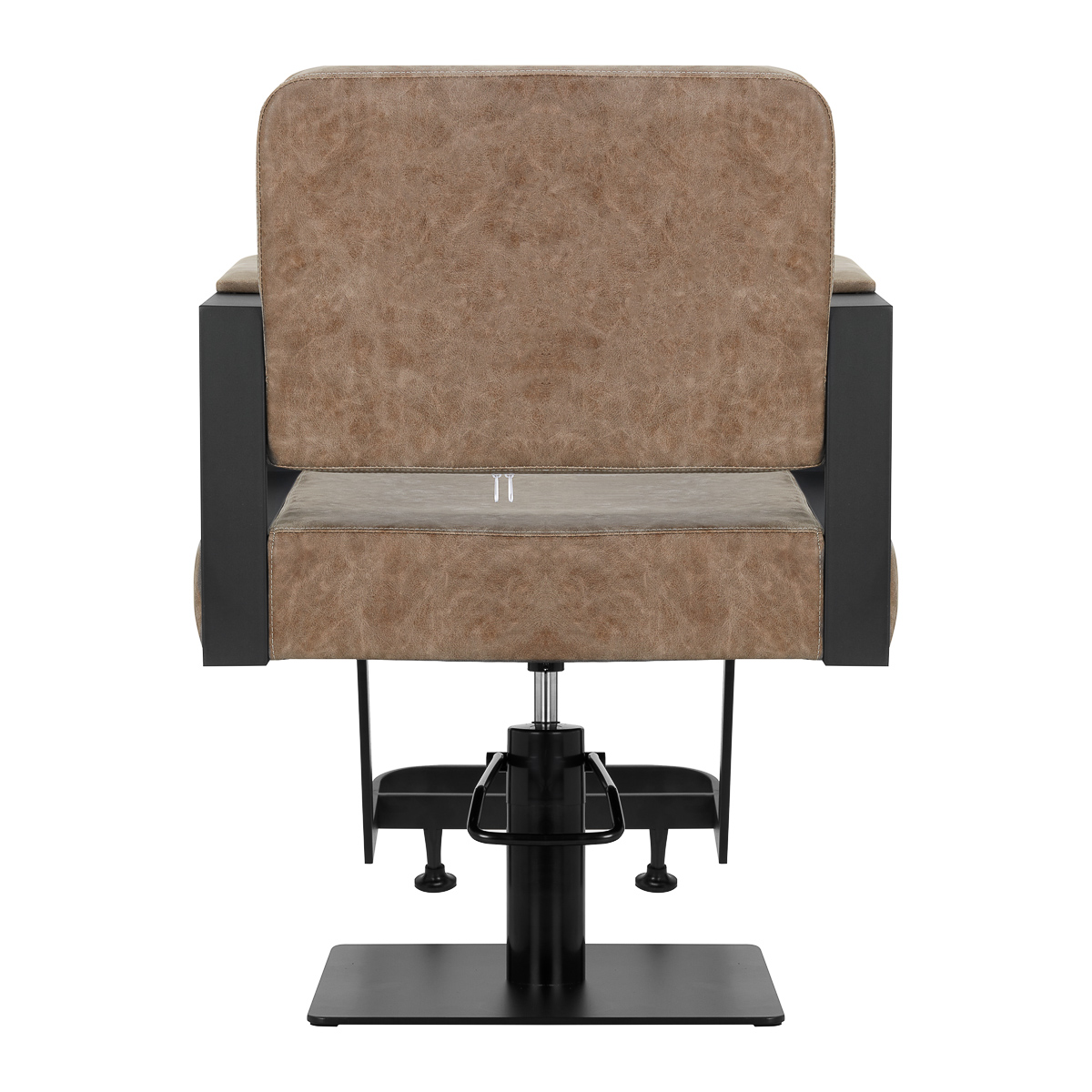 Equipping the chair with a full rotation mechanism makes the hairdresser’s work more effective and comfortable. The solid, flat, square-shaped base guarantees stability during use. The matte-finished, smooth surface gives the element an elegant look and makes it easy to keep clean. A comfortable seat with foam filling ensures high comfort of use, even during many hours of treatments. Geometric, partially upholstered armrests allow for the correct positioning of the client’s shoulders – this means that he does not bury his head in his shoulders or slouch – clearly making it easier to perform precise treatments, including haircuts.