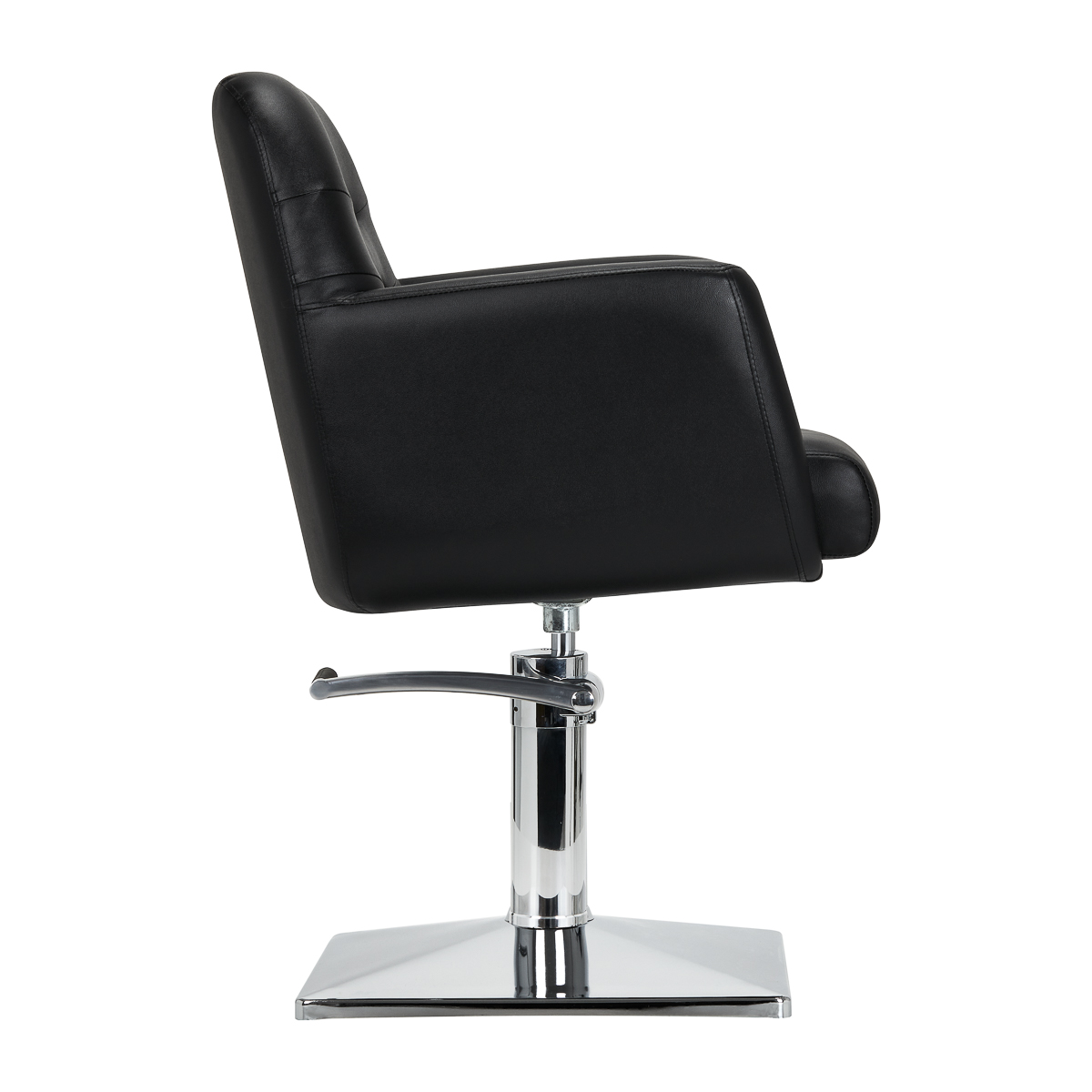 A solid base guarantees stability during use. The smooth surface with a mirror finish makes this element easy to keep clean. The seat with foam filling ensures high comfort of use and convenience even during many hours of treatments. The full rotation mechanism makes the hairdresser’s work more effective and comfortable. Armrests located at the appropriate height allow for the correct positioning of the client’s shoulders – this means that he does not hide his head in his shoulders or slouch – clearly facilitating the precise performance of treatments, including haircuts.