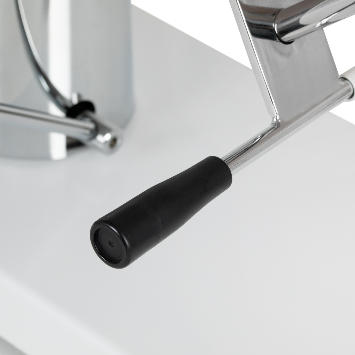 The chair can make a full rotation, which allows you to adjust it to the treatment being performed at the moment. The actuator has a built-in locking system, so that once the selected position is set, the equipment holds it stably. The armrests guarantee adequate support, and can be easily removed if necessary. These elements, divided in half, are movable, so they lay well when changing the position of the backrest.