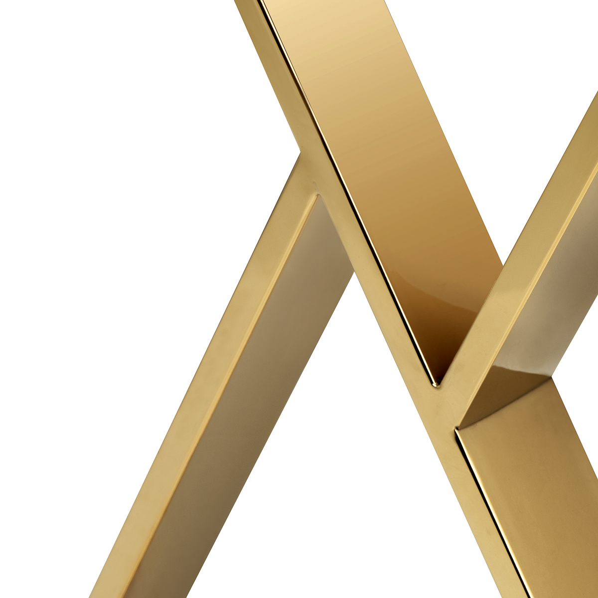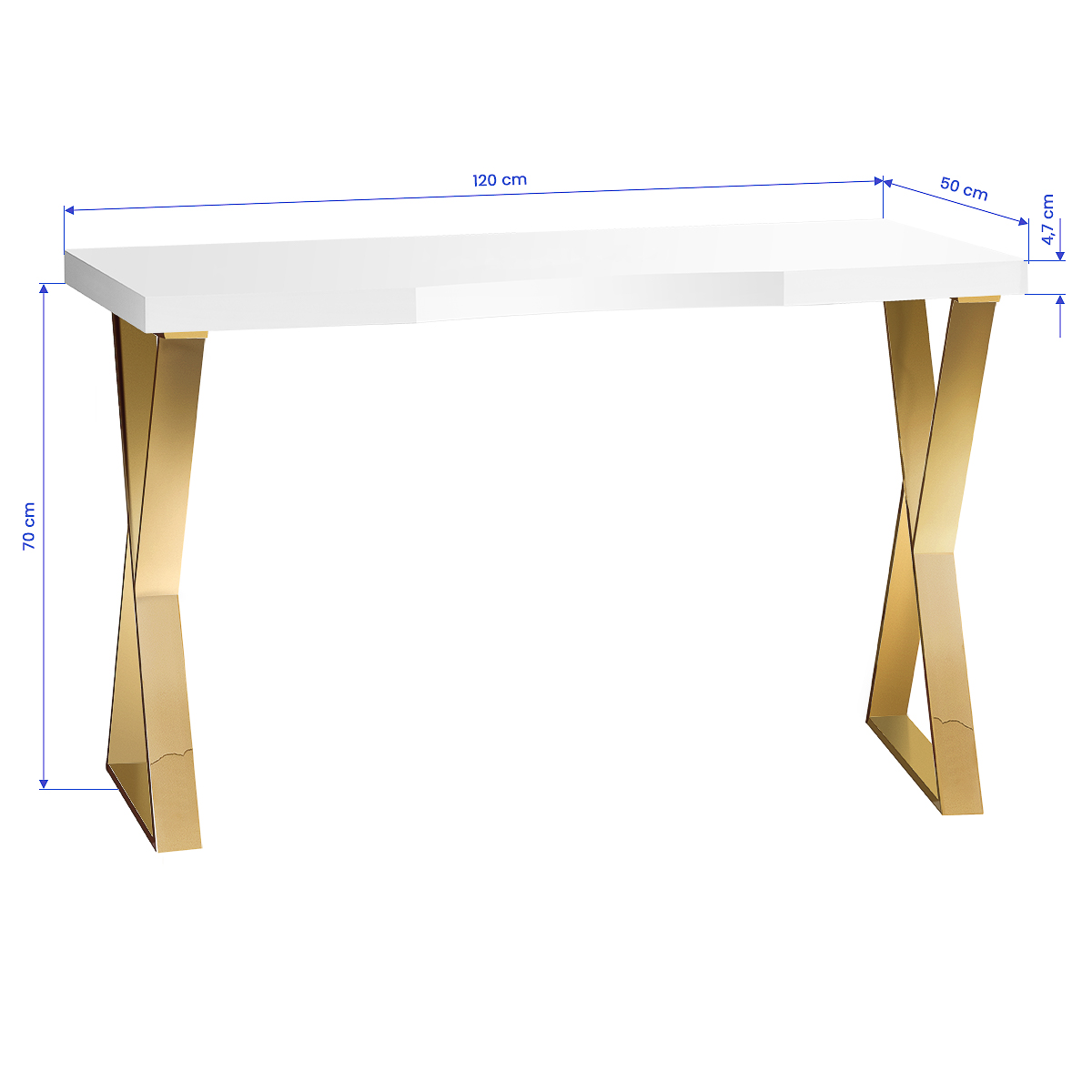 The high-gloss white top and geometric, golden legs give it lightness and a modern character. Thanks to its light form, the desk will work well in both intimate and spacious interiors, emphasizing their exclusive character. It is an excellent investment in aesthetics and comfort of daily work.