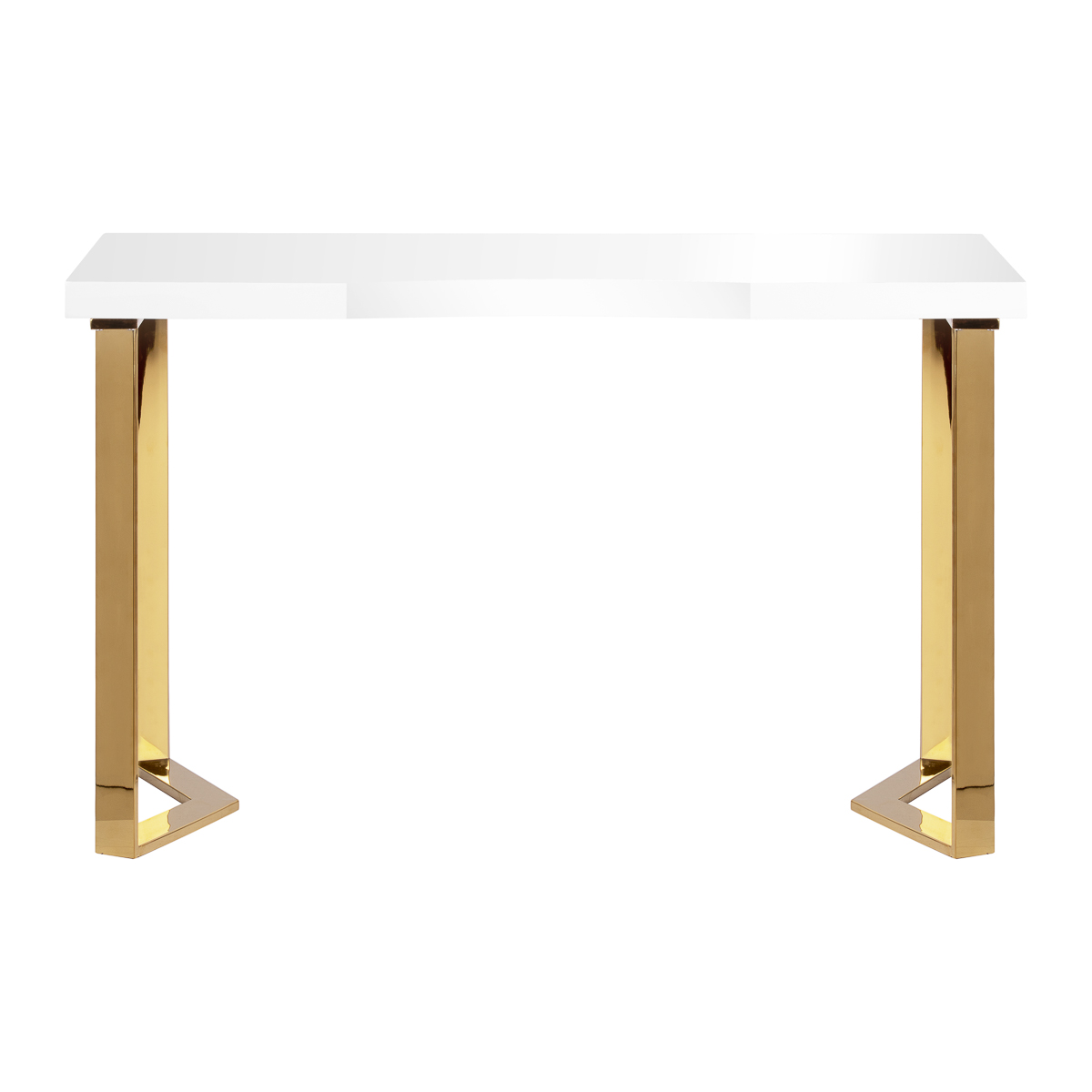 The modern form of the desk, combining a white top with gold, geometric legs, adds lightness and elegance to the interior. Thanks to its compact, yet stylish form, the desk will work perfectly in both small salons and larger, modern interiors.