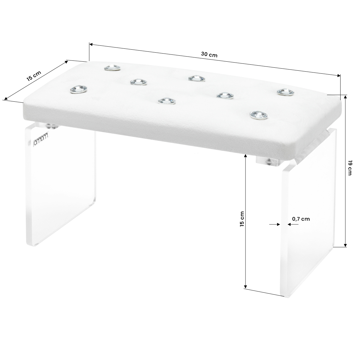 The Momo Diamond manicure support stand is both an elegant and functional element of nail salon equipment. The great advantage of this product is its ideal size, which allows you to place the necessary equipment under it, such as a dust collector, a nail drill or a UV lamp, ensuring ergonomic work. The support also allows the client’s hand to be freely manoeuvred, which guarantees high comfort of work.
