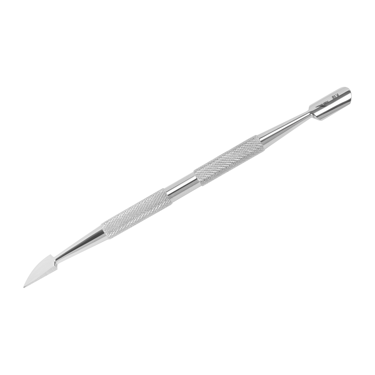 The nippers are designed for easy and safe cuticle removal. Their ergonomic shape provides a comfortable grip, while the extremely sharp blades allow for precise cutting without the risk of damaging the skin. Made from high-quality stainless steel, they are corrosion-resistant and easy to disinfect. The double-sided hoof is a versatile tool that allows both gentle pushing back of cuticles and their effective removal. One tip is a rounded pusher, ideal for shaping and pushing back cuticles without irritation. On the other side is the tip in the form of a bevelled triangular cutter, which allows you to precisely remove stubborn, keratinised sections of the epidermis.