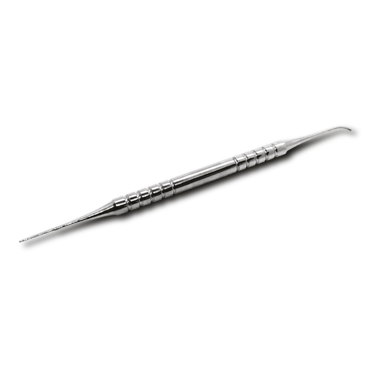 The angled file is designed for leveling the edge of the nail or its reconstruction. It is even suitable for leveling ingrown nails in hard-to-reach areas. In addition, the file can be used for the application of adhesive clamps. The tool has two different tips – one straight and the other slightly rounded. The file has a very comfortable handle and a practical compact size. The product is made of high-quality stainless steel and is suitable for autoclave sterilization.