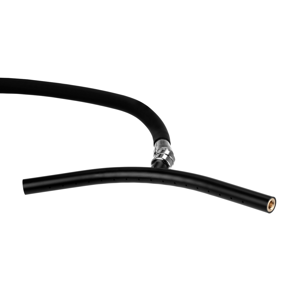 The Gabbiano rain shower faucet is available in an elegant black and chrome finish, making it suitable for modern and stylish salon interiors. The standard faucet is designed to be installed at the bowl of a hairdresser’s basin and is compatible with most models available on the market.